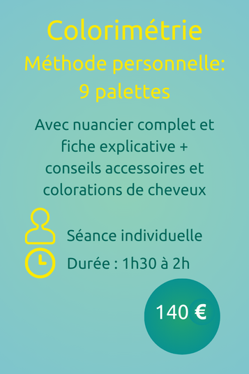 Mon "petit" plus: Après 21 années d'expérience, j'ai développé l'analyse à 9 palettes au lieu de 4, ce qui permet d'affiner le choix de vos couleurs!